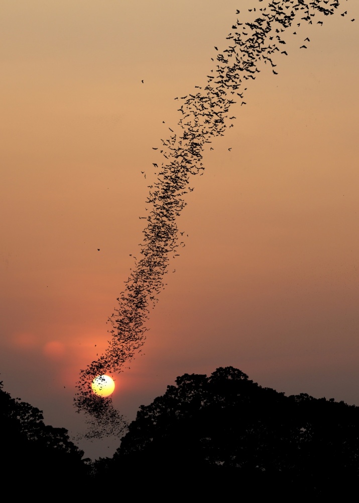 "Bats swarm at sunset" by Jean De Spiegeleer.