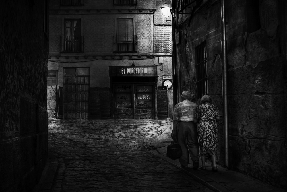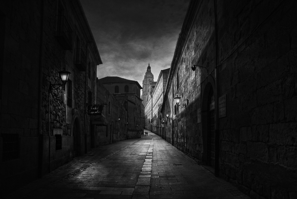 It is my first analogue photo where I was fully satisfied with the result. It is a scene related to Easter in Toro, a small Spanish town where this religious festival is deeply rooted. I went there to get a good story about the event. I arrived early and walked through the streets. I saw coming towards me a group of people dressed for the procession that would take place that morning. They were laughing and joking in contradiction to the seriousness of the religious event. I aimed and fired several times. This is the one I like the most because the young girl made eye contact with me. It departs somewhat from an urban landscape but street photography is also a natural part of me. It is not an artistic masterpiece nor does it have the best framing but as I said, when the story is good, it overrides technique.