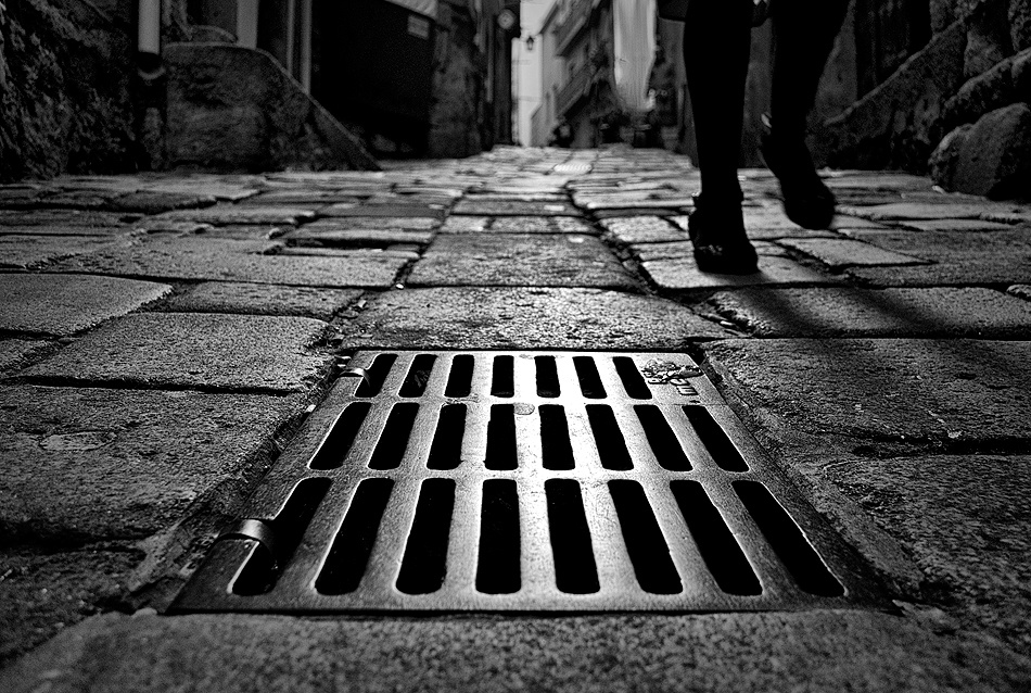 However, just under our feet there are amazing photographic subjects to discover. Perhaps a puddle reflection of the real world on a rainy day, a shadow flow, a pattern in the sidewalk or the opportunity of great geometric compositions from road intersections.