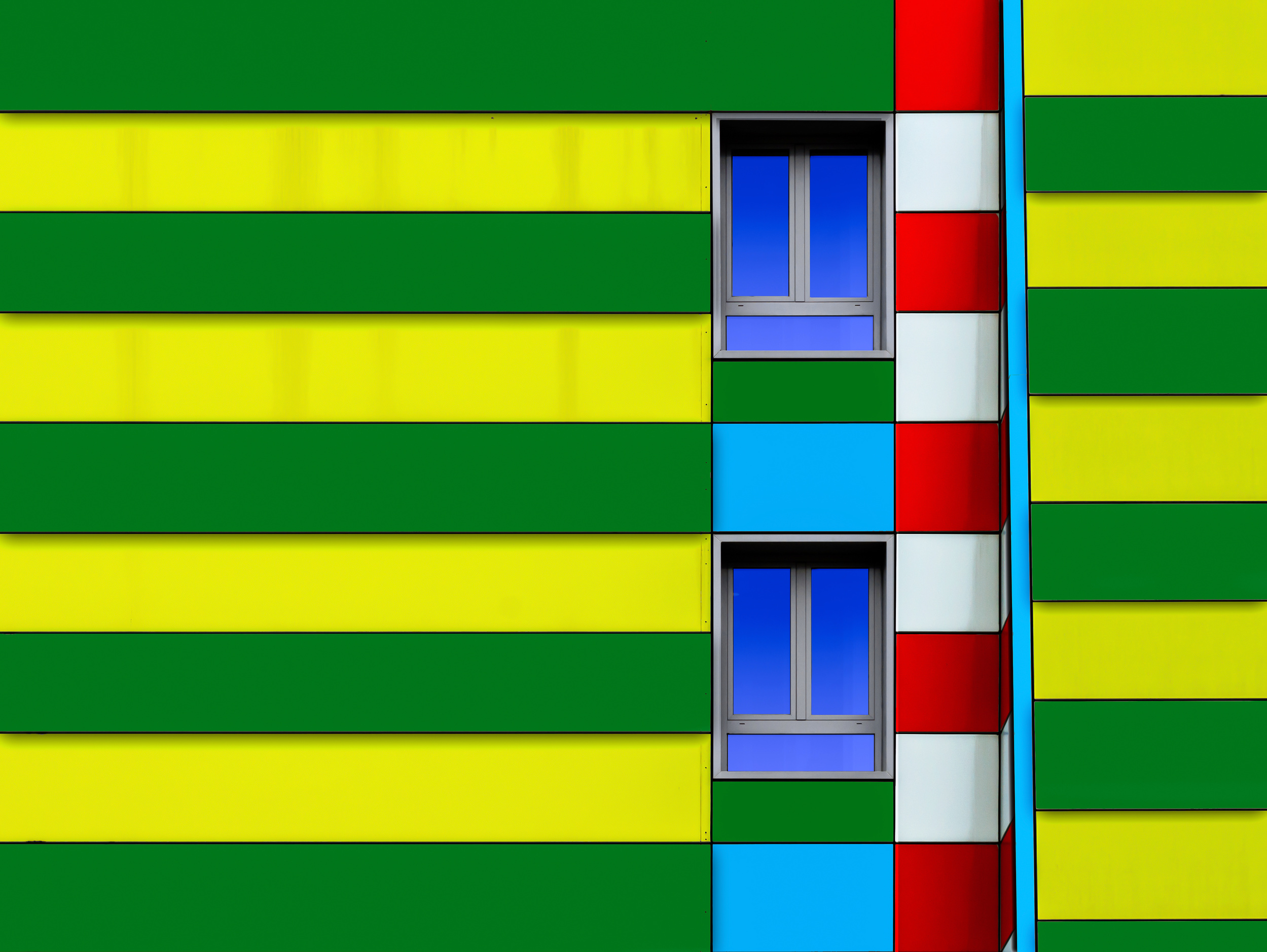 'Online' consists of two photographic shots.  The idea came to me when I saw a red facade with a horizontal white line. I knew it was a nice composition, but something was missing. Ideas always pop up sooner or later but certainly if you explore the surroundings, you will realize you have it right there.